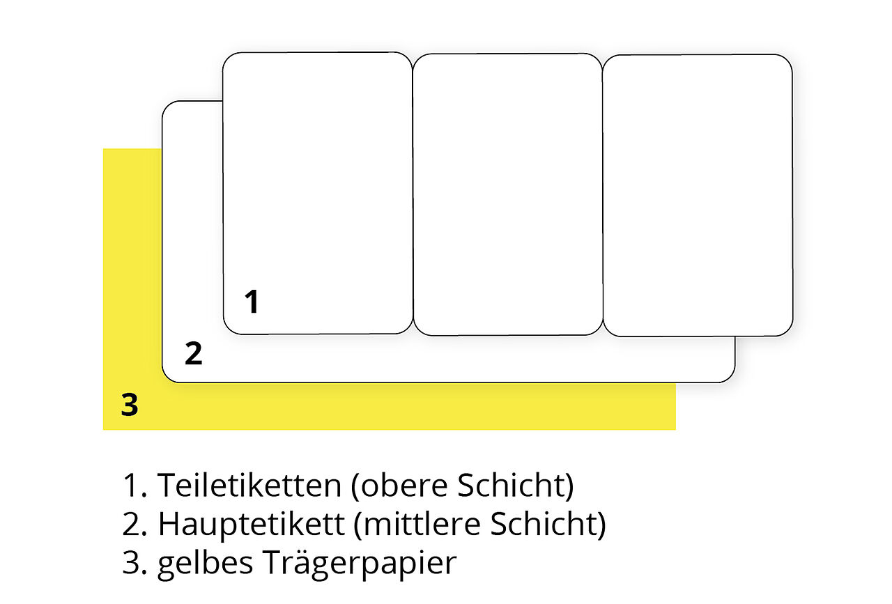 Duplex-Etiketten bestehen aus zwei Lagen: einem Basisetikett und mehreren Teiletiketten. Das Basisetikett bildet die Grundlage, während die Teiletiketten die oberste Ebene darstellen. Diese können in verschiedenen Grössen gestaltet sein, je nach den Anforderungen und Wünschen des Nutzers.