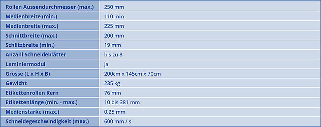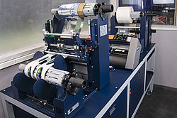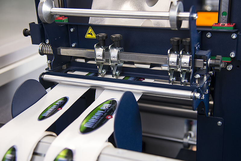 Anschliessend wird jedes einzelne Etikett entgittert und so von überschüssigem Material befreit. Sowohl die fertig produzierten Etiketten als auch die Materialüberreste werden getrennt und automatisch wieder aufgerollt. Je nach Bedarf können Sie Ihre produzierten Etiketten auf bis zu 8 verschiedene Rollen aufwickeln.