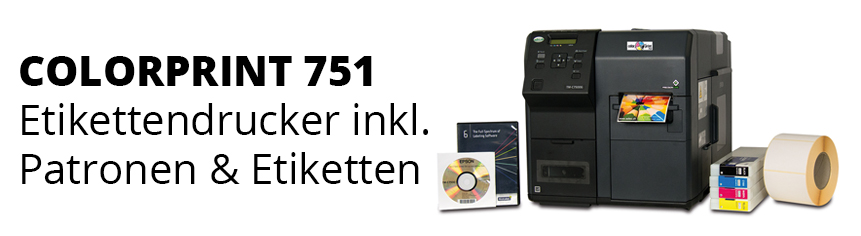 Passende Farbetikettendrucker: COLORPRINT 751, COLORPRINT 750, COLORPRINT VP700, EPSON ColorWorks C7500, PRIMERA LX2000E sowie Thermotransfer-Etikettendrucker mit SDR-Farbband.