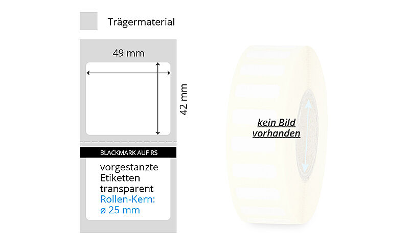 | 49 x 42 mm | Transparent | Permanent | 1'000 | SPP-M804 | ø 25 mm | mit Blackmark auf RS, mit Perfo | 040279 | ||