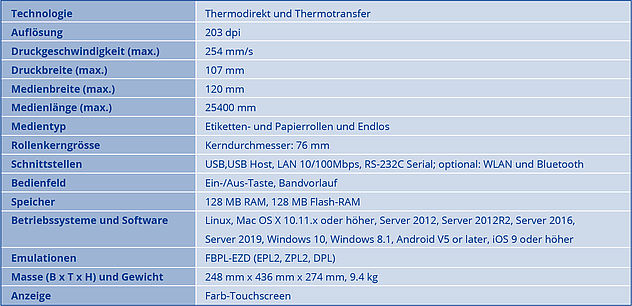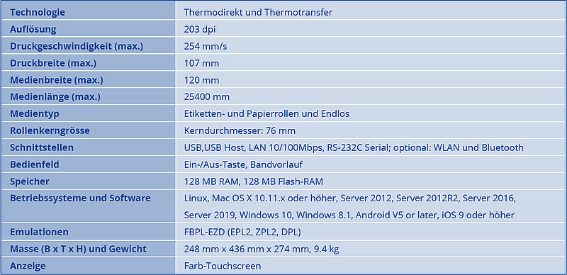 203 dpi Thermotransfer Drucker mit USB, Seriell und LAN Schnittstelle