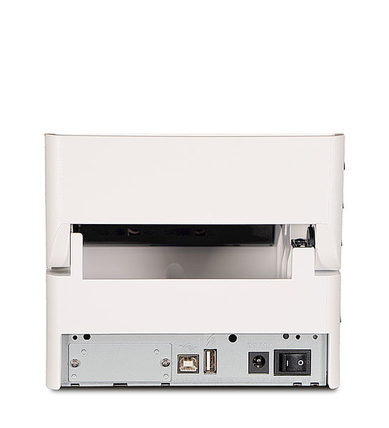 Der Etikettendrucker verfügt über Dual Interface USB eingebaut plus optionaler Schnittstellen-Steckplatz. Optional: WLAN, Seriell RS-232, Ethernet und Bluetooth.