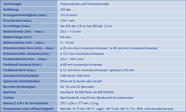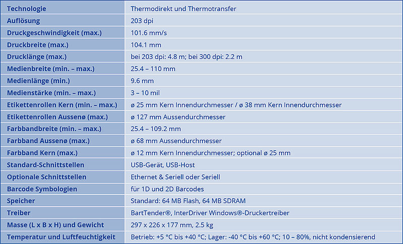 Dieses Druckermodell verfügt über folgende Standard-Schnittstellen: USB & USB Host. Optional vorinstalliert: Seriell oder LAN & Seriell. Optional vom Anwender installierbar: Parallel