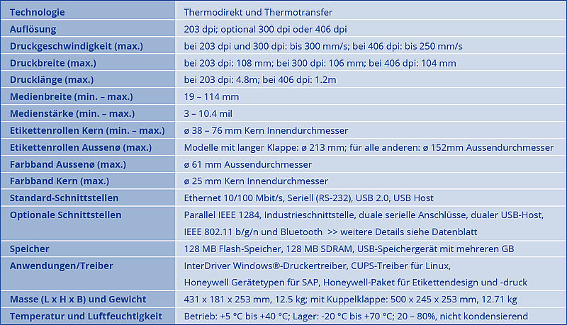 Honeywell PM43c mit Full Touch Display, Long Door, LAN, 300 dpi