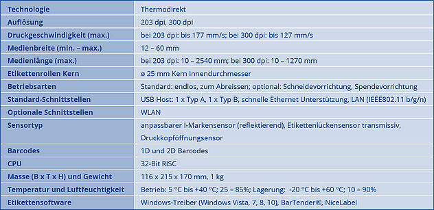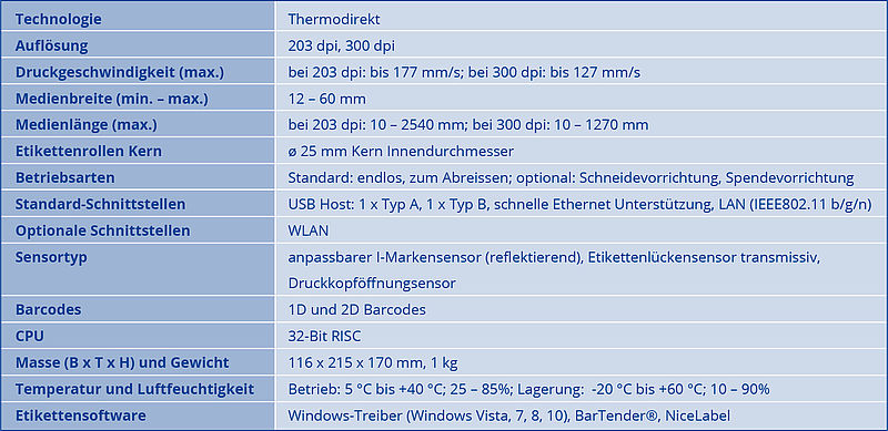Mit diesem Modell drucken Sie Etiketten und Armbänder. Es kann Medien mit einer Breite von 12 bis 60 mm verarbeiten bei einer max. Geschwindigkeit von bis zu 177 mm/s.