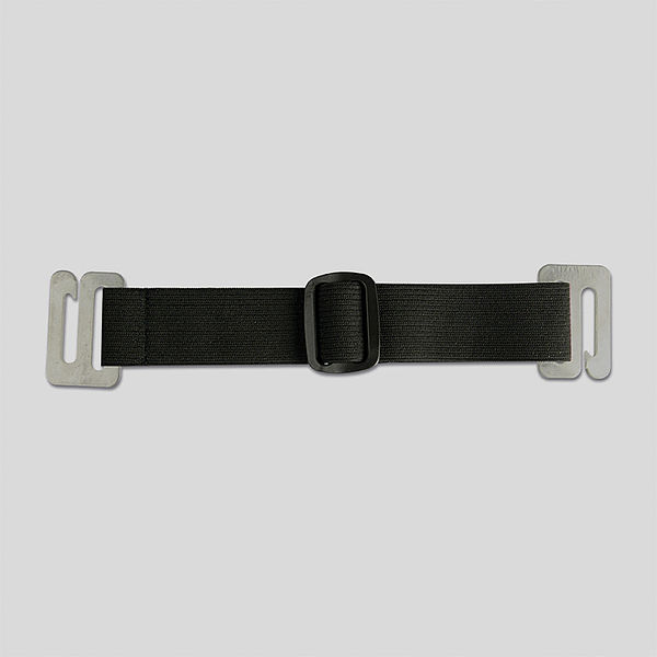 Magnetenhalter mit schwarzem Kunststoffüberzug und zwei runden Magneten und einer verzinkten, selbstklebenden Stahlplatte.