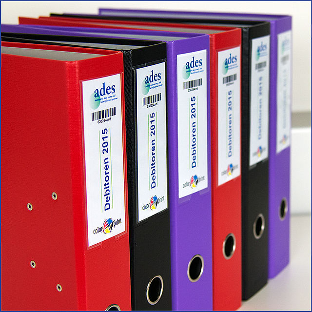 Ordner Rücken individuell mit Text, Logo und Barcode beschriften.