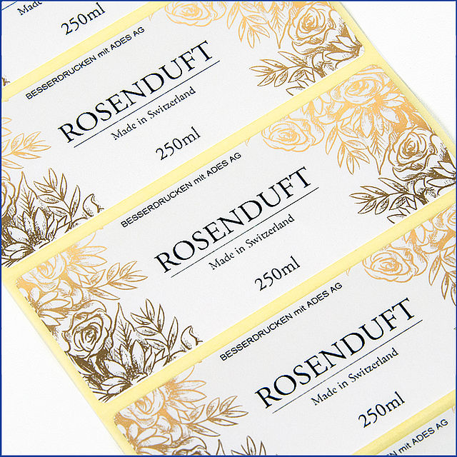Zur Veredelung von Etiketten bieten wir spezielle Gold- bzw. Silber-Prägefolien an.
