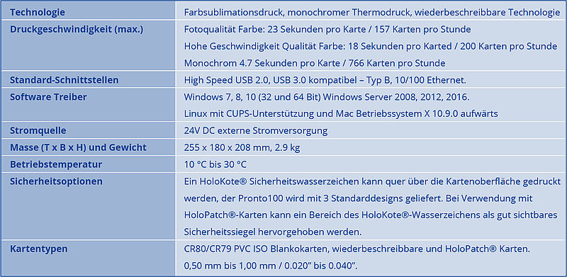Muss es schnell gehen, ist der EasyBadge Pronto 100 das ideale Modell. Schnell einzurichten, schnell zu bedienen und schnell in der Ausgabe herausragender Ergebnisse.