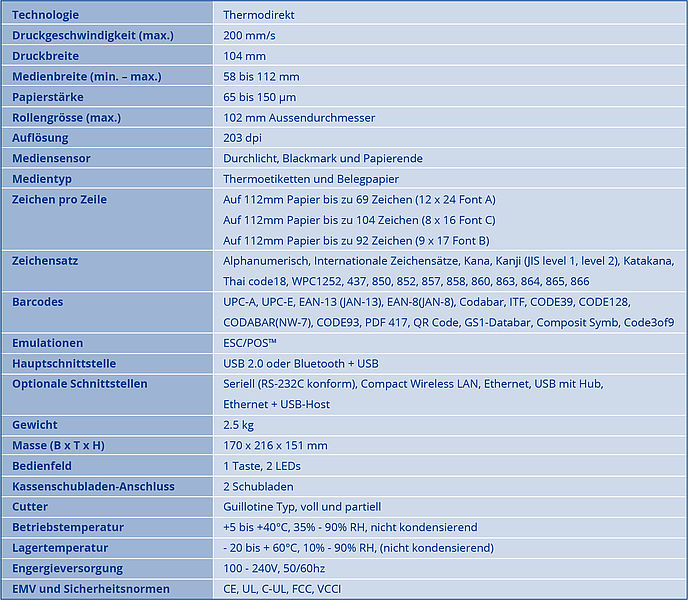 Der neue Belegdrucker von Citizen bietet Ihnen viele dynamische Features und ist in der Handhabung sehr benutzerfreundlich. Der preiswerte 4-Zoll POS-Drucker mit präziser Dokumentenskalierung (Kompressionstreiber) verkleinert grosse mehrspaltige A4-Dokumente zu perfekten kleinen Belegen. Mit diesem Modell bedrucken Sie Kassenbons mit einer Breite von 58 bis 112 mm.