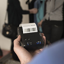 Der Mobile Bondrucker verfügt ausserdem über eine Sturzfestigkeit für Höhen bis zu 150 cm. In Kombination mit der optionalen Tragtasche ist er nach IP54 für Stoss- und Wasserfestigkeit zertifiziert.