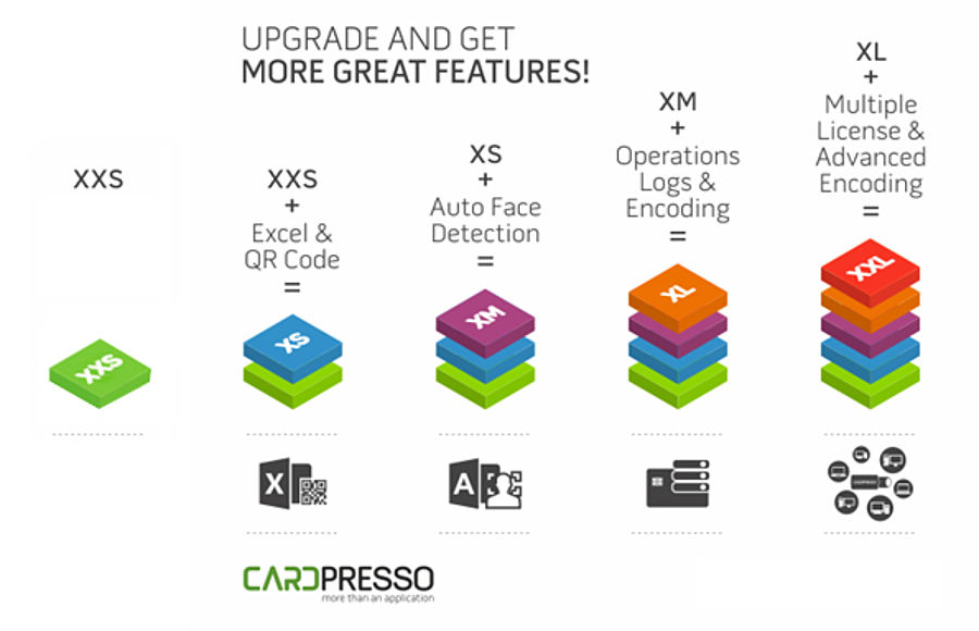 Die XXL Cardpresso Software ist für die unterschiedlichsten Kartendruck-Projekte mit höchsten Anforderungen geeignet und bietet Ihnen alle grundlegenden Features der Basisversion XXS, der Version XS, XM, XL sowie weitere sehr hilfreiche Funktionen für eine professionelle Kartenherstellung mit erweiterten Funktionen. Es können dank Netzwerklizenz mehrere Mitarbeiter gleichzeitig an bis zu 16 PCs an der Kartenproduktion arbeiten. Weitere Funktionen sind: Mifare DESFire, Webprint Server etc.